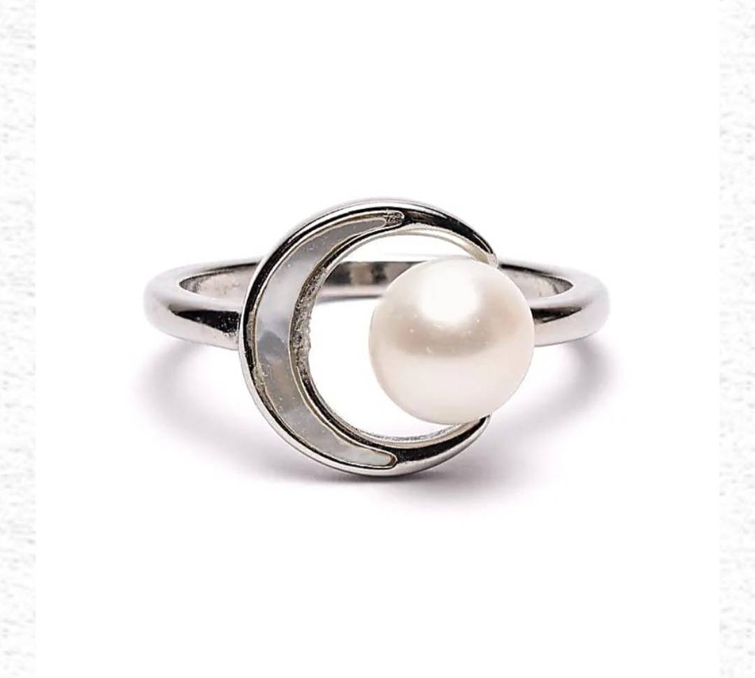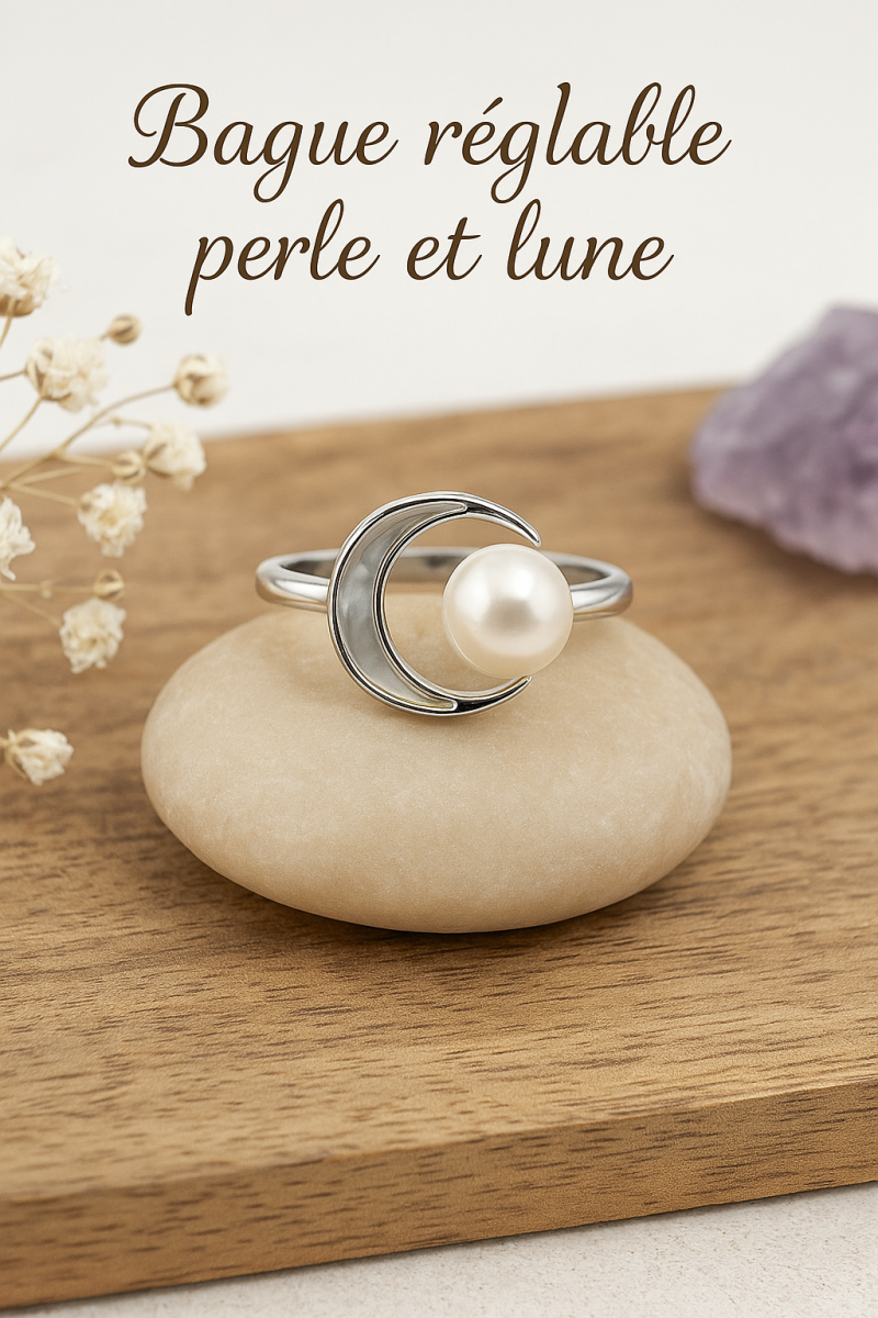 Bague réglable perle et lune