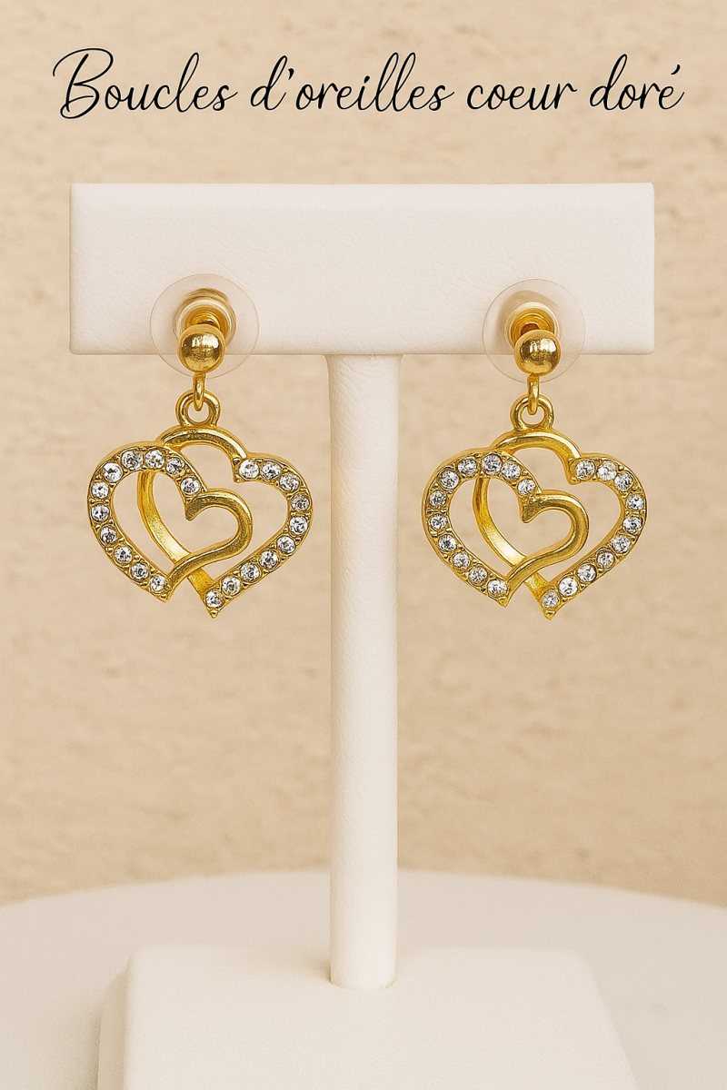 Apportez une touche de lumière et de tendresse à votre tenue avec ces boucles d’oreilles cœurs dorées aux reflets chaleureux.