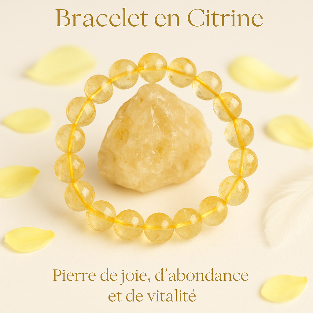 Laisse rayonner la lumière du soleil à ton poignet avec ce magnifique bracelet en Citrine naturelle. Symbole de joie, d’abondance et de vitalité, la Citrine est une pierre solaire qui illumine le quotidien, réchauffe le cœur et attire la prospérité sous toutes ses formes.